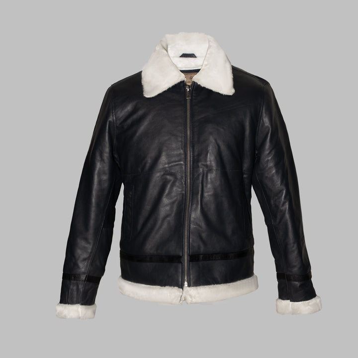 Discover our trendy men’s blackish-grey flight jacket, crafted from premium Nappa Lamb leather with a soft, luxurious feel and accented with white faux fur. Designed in a regular fit, this stylish jacket combines classic aviator vibes with modern flair. Ethically sourced from certified tanneries, it’s a sustainable choice for the eco-conscious fashion lover.