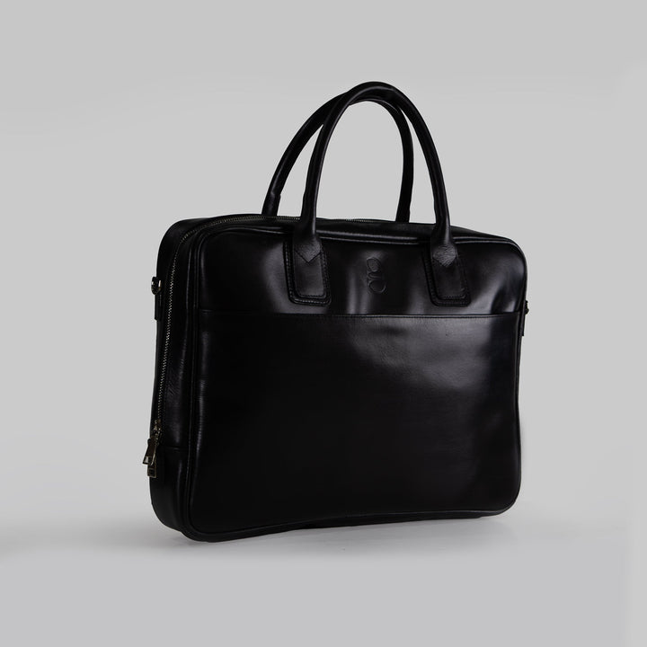 Chancellor Black Real Leather Laptop Bag - Stylish & Durable for Professionals