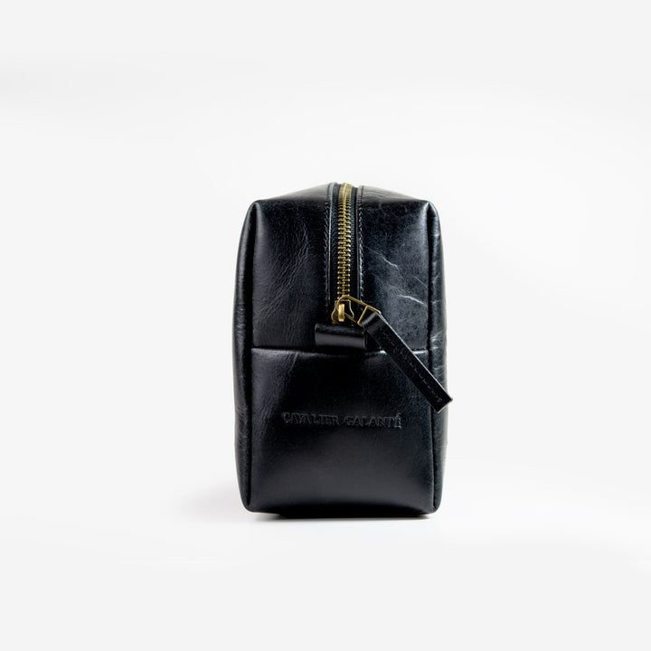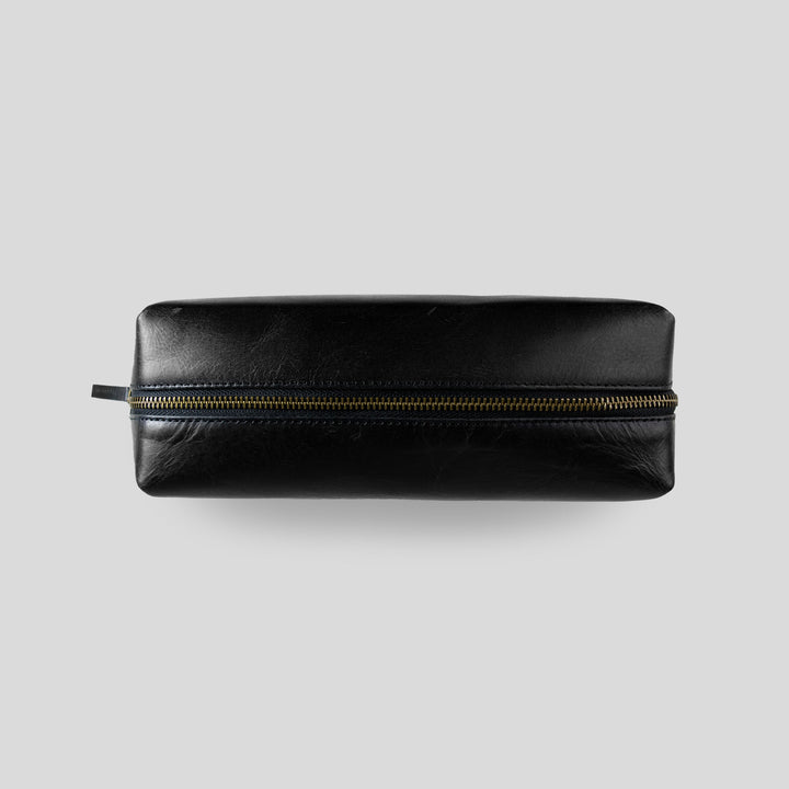 Travel Buddy (Plain Black)-Real Leather Toiletry Bag