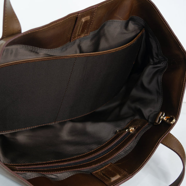 Jumbo Brown Real Leather Tote Bag - Spacious & Stylish for Everyday Essentials