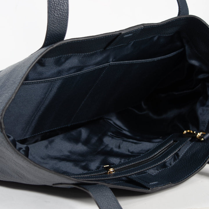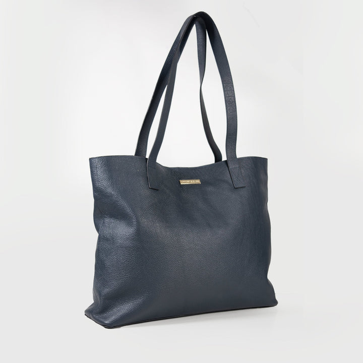 Jumbo Navy Blue Real Leather Tote Bag - Spacious & Stylish Unisex Essential